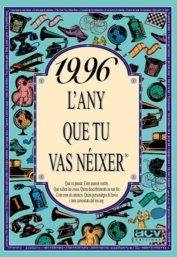 El llibre de 1996 conté una selecció de notícies curioses que van passar aquell any, imatges, anuncis i en general tot allò per entendre com era el món aquell any, com era la moda, què es va inventar, quins anuncis hi havia, les cançons i les pel·lícules d'èxit, quant valien les coses, quins personatges famosos destacaven, i moltes coses més. Aquest llibre de 1996 forma part de la popular col·lecció "L'any que tu vas néixer". Un detall ideal per al protagonista de la festa d'aniversari, o per sorprendre a cadascun dels convidats del teu proper sopar amb amics o família. Posa el llibre de l'any de cada convidat al seu lloc de la taula i veuràs la sorpresa quan se'l trobin. De seguida es trencarà el gel amb converses apassionades plenes de records. La col·lecció "L'any que tu vas néixer" va de 1920 a 2004.