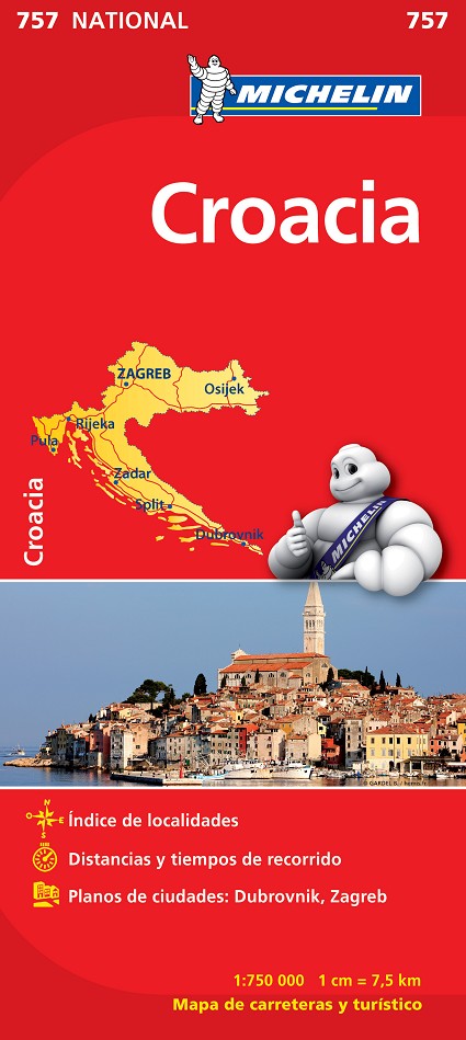 El Mapa National Croacia, editado a escala 1/750 000, guarda además otros interesantes contenidos, tales como los planos de la ciudades de Dubrovnik o Zagreb, índice de localidades, cuadro de distancias y tiempos de recorrido.