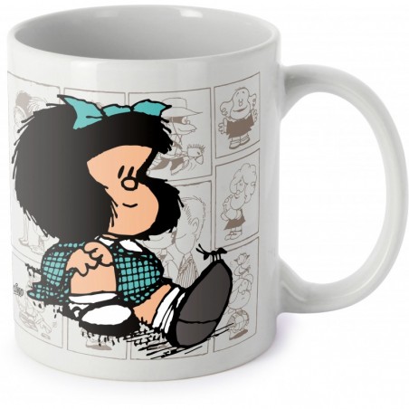 Mafalda : Tassa Mafalda asseguda vestit de quadres verd
