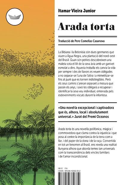 Arada torta és una novel·la polifònica, màgica i commovedora que clama contra la injustícia i que posa al centre la importància de la terra com a llar, i del paper de la dona i de la raça. Convertida en tot un fenomen al Brasil, ens revela una realitat llunyana alhora que aborda temes tan universals com la transcendència dels vincles familiars i de l’amor incondicional."
