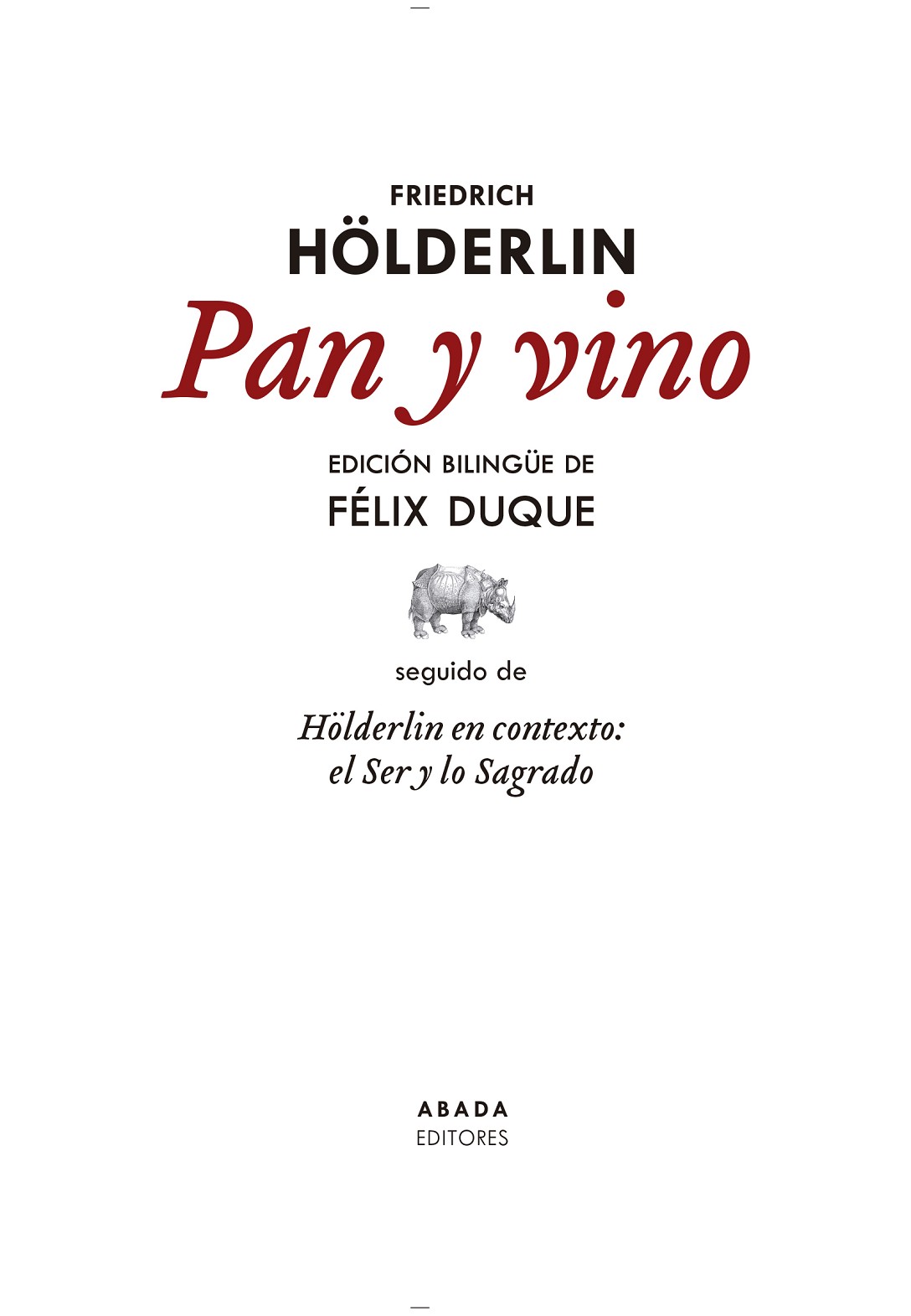 El presente libro ofrece la primera edición crítica bilingüe de la conocida elegía de Hölderlin Pan y vino, en sus distintas variantes, seguida de un ensayo contextualizador de su pensamiento poético: El Ser y lo Sagrado, según las cuatro grandes vertientes de la obra del escritor: Ontología, Mitología, Religión y Política. Félix Duque, autor de esta edición, ofrece así una visión de conjunto del quehacer del gran poeta de Lauffen, a sabiendas de que nunca podremos abarcar ese vasto archipiélago, que bien cabría caracterizar con el ambicioso apotegma de Lucano: nil actumreputat, si quid superesset agendum.