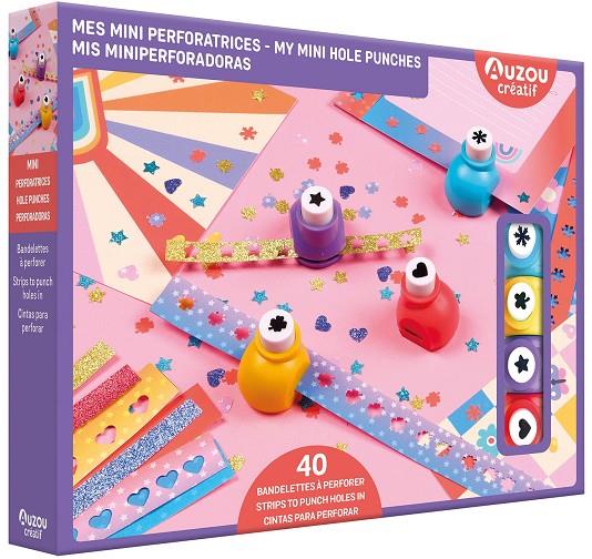 ¡Con este estuche los más pequeños podrán pegar, decorar y dar rienda suelta a su creatividad! El estuche contiene 4 mini perforadoras que permiten al niño decorar sus 4 tarjetas, con 40 tiras de purpurina y de colores.